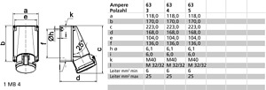 63A 3p (2P+PE) 230V (200 bis 250V) 6h IP44, Frequenz: 50 und 60Hz,