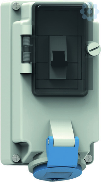 Gerätefarbe: Betätigungsklappe rauchtopas, Klappdeckel blau RAL 5015, Gehäuseunterteil grau RAL 7035, Gehäuseoberteil grau RAL 7035,