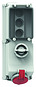 Gerätefarbe: Betätigungsklappe rauchtopas, Klappdeckel rot RAL 3000, Gehäuseschrauben grau RAL 7035, Gehäuseunterteil grau RAL 7035, Gehäuseoberteil grau RAL 7035, Schalterknebel grau RAL 7035,