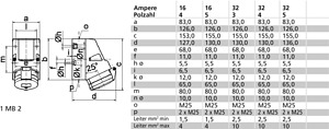 Kabeleinführung: 1xM25 oben, 2xM25 unten,