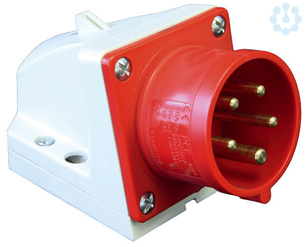 CEE Wandgerätestecker nach IEC 60309, EN 60309, VDE 0623, 15° geneigt, Schutzart spritzwassergeschützt IP44, 16A, 5-polig, Nennspannung 400V AC, 6h, rot, Leitungseinführung von oben oder hinten (M25), inklusive Würgenippel, mit unvernickelten Kontakten