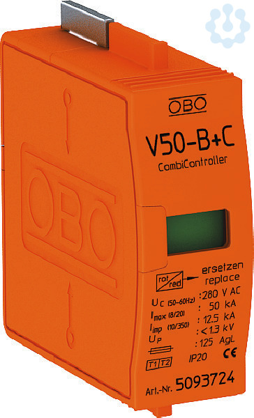 Oberteil: Kombiableiter aus Blitzstrom- und Überspannungsableiter Typ 1+2 nach EN 61643-11 zum Blitzschutzpotentialausgleich nach VDE 0185-305 sowie Überspannungsschutz nach VDE 0100-443. Optische Funktionsanzeige Schutzpegel < 1 kV max. erforderliche Vorsicherung 160 A. Gekapselte, nicht ausblasende Varistorableiter. 5 Jahre Gewährleistung