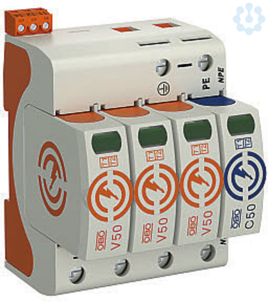 Der V50 Blitzstrom-Kombiableiter aus halogenfreiem Kunststoff eignet sich für einen Blitzschutz-Potentialausgleich nach VDE 0185-305 (IEC 62305). Eine dynamische Abtrennvorrichtung und optische Statusanzeige zeichnen die modular steckbaren Ableiter aus. Die FS mit NPE-Variante bietet eine hochbelastbare Funkenstrecke zwischen Null- und Schutzleiter sowie einen potentialfreien Wechslerkontakt, der die Fernsignalisierung ermöglicht. Besonders geeignet ist der CombiController für den Blitzschutz-Potentialausgleich für Gebäude der Blitzschutzklasse III und IV. Das Blitzstromabableitvermögen beträgt 12,5 kA (10/350) pro Pol und bis zu 50 kA (10/350) gesamt. Die vibrationssichere Verrastung und die Spannungs- sowie Typenkodierung sorgen für Sicherheit und vermeiden Verwechslungen von Ober- und Unterteilen. Durch die keilförmige Ausführung der Kontakte ist ein einfaches Einsetzen und noch einfacheres Entnehmen der Oberteile möglich. Über den auf dem Leistungsschild aufgebrachten QR-Code lassen sich mit Hilfe mobiler