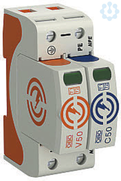 Der V50 Blitzstrom-Kombiableiter aus halogenfreiem Kunststoff eignet sich für einen Blitzschutz-Potentialausgleich nach VDE 0185-305 (IEC 62305). Eine dynamische Abtrennvorrichtung und optische Statusanzeige zeichnen die modular steckbaren Ableiter aus. Die NPE-Variante ist zusätzlich mit einer hochbelastbaren Funkenstrecke zwischen Null- und Schutzleiter ausgestattet. Besonders geeignet ist der CombiController für den Blitzschutz-Potentialausgleich für Gebäude der Blitzschutzklasse III und IV. Das Blitzstromabableitvermögen beträgt 12,5 kA (10/350) pro Pol und bis zu 50 kA (10/350) gesamt. Die vibrationssichere Verrastung und die Spannungs- sowie Typenkodierung sorgen für Sicherheit und vermeiden Verwechslungen von Ober- und Unterteilen. Durch die keilförmige Ausführung der Kontakte ist ein einfaches Einsetzen und noch einfacheres Entnehmen der Oberteile möglich. Über den auf dem Leistungsschild aufgebrachten QR-Code lassen sich mit Hilfe mobiler Endgeräte schnell und einfach zusätzliche technische Produktin