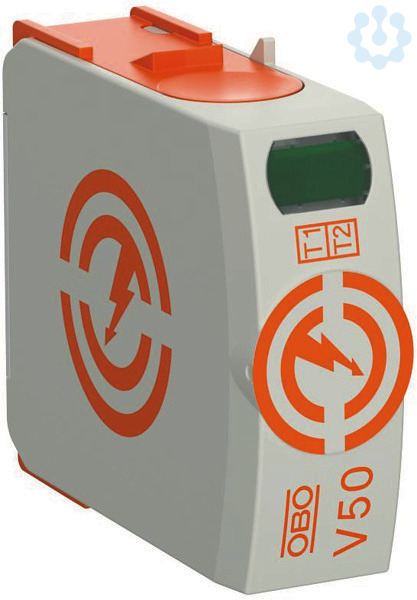 Das Oberteil des V50 Blitzstrom-Kombiableiters aus halogenfreiem Kunststoff eignet sich für einen Blitzschutz-Potentialausgleich nach VDE 0185-305 (IEC 62305) und dient als Ersatzteil für die V50 CombiController. Eine dynamische Abtrennvorrichtung sowie eine optische Statusanzeige zeichnen die modular steckbaren Ableiter aus. Das Blitzstromabableitvermögen beträgt 12,5 kA (10/350) pro Pol und bis zu 50 kA (10/350) gesamt. Die vibrationssichere Verrastung und die Spannungs- sowie Typenkodierung sorgen für Sicherheit und vermeiden Verwechslungen von Ober- und Unterteilen. Durch die keilförmige Ausführung der Kontakte ist ein einfaches Einsetzen und noch einfacheres Entnehmen der Oberteile möglich. Über den auf dem Leistungsschild aufgebrachten QR-Code lassen sich mit Hilfe mobiler Endgeräte schnell und einfach zusätzliche technische Produktinformationen abrufen.