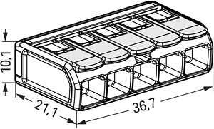 COMPACT-Verbindungsklemme. für alle Leiterarten. für Anwendungen Ex e. max. 6 mm². 5 Leiter. mit Hebeln. Gehäusefarbe transparent. Betriebstemperatur max. 105 °C. 6,00 mm². transparent