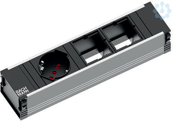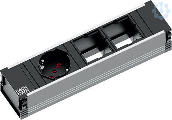 CONI Steckdoseneinheit ALU Länge: 3-fach / 217mm 1xP40 Steckdoseneinsatz.2xCustom Module Stromeingang: 0,20m H05VV-F 3G1,50mm² schwarz mit Wieland GST18 Steckverbinder.