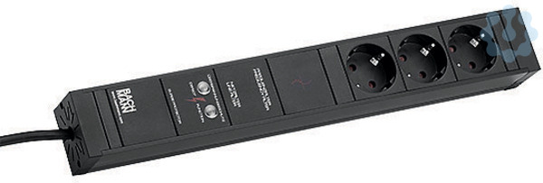 CONNECT LINE Steckdosenleiste Kunststoff schwarz. 3xSchutzkontaktdosen 35° schwarz. mit erhöhtem Berührungsschutz mit Überspannungsschutz und Netzfilter, wiederanschließbar 2,0m H05VV-F 3G1,50mm² schwarz. mit Schutzkontakt Winkelstecker. mit Bachmann Logo. inkl. Befestigungswinkel verpackt im Polybeutel.