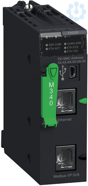 Prozessormodule Modicon M340 BMX P34. 704 digitale+66 analoge E/A, Ethernet TCP/IP RJ45. EAs 1024 digitale E/A256 analoge E/A36 int. Kanäle, max. Netzwerkmodule 2 NetzwerkeEthernet TCP/IP, Speicher 4096 KBintegriert. Artikel-Nr. mit H (Harsh) -25 bis +70° C und Schutzlackierung.
