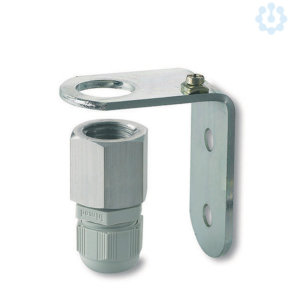 Set für vertikale Montage der Rohrbasis XSW modulare Signalsäule Eco-Modul 70, besteht aus Metallwinkel und Metalladapter mit Kunststoffkabelverschraubung