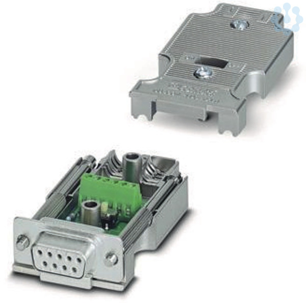 D-SUB-Stecker, 9-polige Buchse, axiale Ausführung mit zwei Kabelzuführungen, Bussystem: CAN, CANopen, SafetyBus-P. Pinbelegung: 2,3,7. Schraubanschlussklemmen