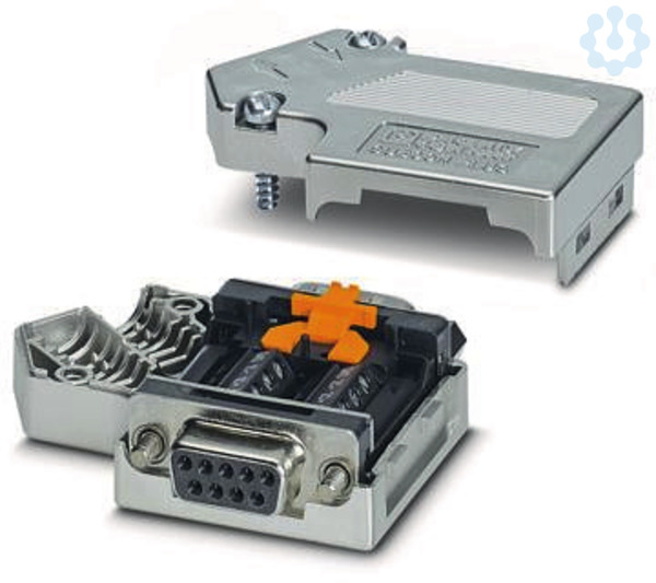 D-SUB-Stecker, 9-polige Buchse, Kabelzuführung unter 35°, Bussystem: CAN, CANopen®, SafetyBus-P bis 1 MBit/s, mit PG D-SUB-Buchse zum Anschluss eines Programmiergeräts, Abschlusswiderstand ü. Schiebeschalter zuschaltbar, Pinbelegung: 2, 3, 7, 9. Schraubklemmen