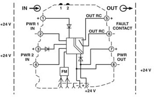 Das Fault Monitoring Modul dient zur Auswertung und Meldung der Sammelfehler des Fault Monitoring Systems und zur Überwachung der Versorgungsspannungen. Die Fehlermeldung erfolgt über einen Schließerkontakt. Schraubanschluss, Standardkonfiguration.