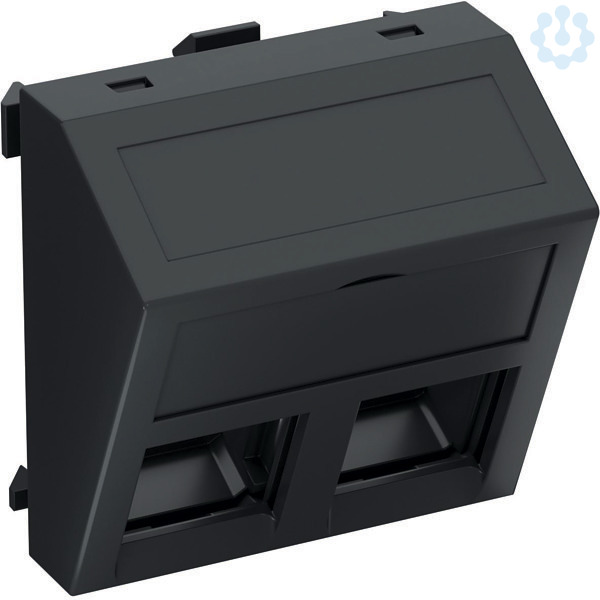 Datentechnikträger mit schrägem Auslass, ohne Verschlussschieber, zur Aufnahme von zwei Datentechnik-Anschlussmodulen mit RJ45-Buchse. Die Rastbefestigung eignet sich für den waagerechten und senkrechten Einbau in die Systemumgebung. Typ C hat eine Montageöffnung von 19,30 X 14,80 mm und ist für die direkte Befestigung der Daten-Anschlussmodule in der Montageöffnung ausgelegt.