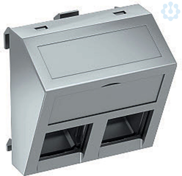 Datentechnikträger mit schrägem Auslass, ohne Verschlussschieber, zur Aufnahme von zwei Datentechnik-Anschlussmodulen mit RJ45-Buchse. Die Rastbefestigung eignet sich für den waagerechten und senkrechten Einbau in die Systemumgebung. Typ C hat eine Montageöffnung von 19,30 X 14,80 mm und ist für die direkte Befestigung der Daten-Anschlussmodule in der Montageöffnung ausgelegt.