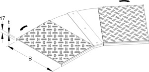 Deckel rutschsicher R10 gemäß DIN 51130, schwere Ausführung, mit aufgenieteten schwerem Aluminiumriffelblech, ohne Drehriegelverschlüsse, höhenunabhängiger Deckel für das winkelverstellbare Formstück der begehbaren Kabelrinnen, flexibel einstellbarer Winkel von 0-90°, überlappender Deckel an den Stoßstellen. Die Befestigung des Deckels erfolgt ausschließlich über die Deckelhaltefeder RDHFS 9... . Diese wurde speziell für die horizontale Deckellage konzipiert. Bei der Befestigung ist darauf zu achten, dass ein Mindestabstand von 50 mm zum Deckelanfang/-ende eingehalten werden muss. Andere Antirutschbeläge auf Anfrage lieferbar. Zur Unterstützung des begehbaren Deckels bitte die Mindestanzahl an Trennstegen beachten (siehe Trennsteg RWTS..., RTSKQ..., RTSQF... und RW...-...)!