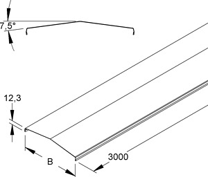 Deckel für Gitterrinne in Dachform, Neigungswinkel 7,5°, zum Aufrasten auf U-förmige Gitterrinnen.