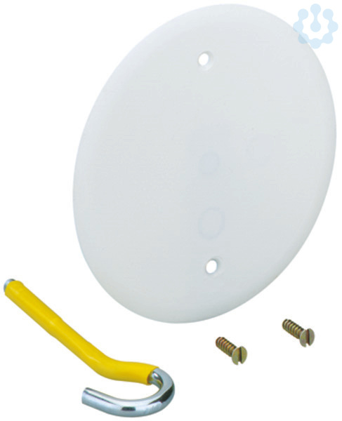 Verschlussdeckel mit Deckenhak HW 050 DD-VD, Verschlussdeckel für Hohlwanddosen, Polystyrol, flammwidrig, weiß, mit isoliertem Metall-Deckenhaken M5 x 55 mm und Befestigungsschrauben, 90, für Deckendose HW-DD,
