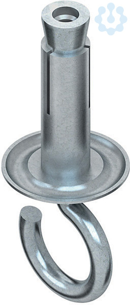 Deckenhaken, mit NIEDAX Stahldübel mit eingedrückter Konusmutter, der Konus des Stahldübels ist unverlierbar mit Verdrehungsschutz. Der Dübel ist nicht bauaufsichtlich geprüft und somit nur für untergeordnete Befestigungen einzusetzen.