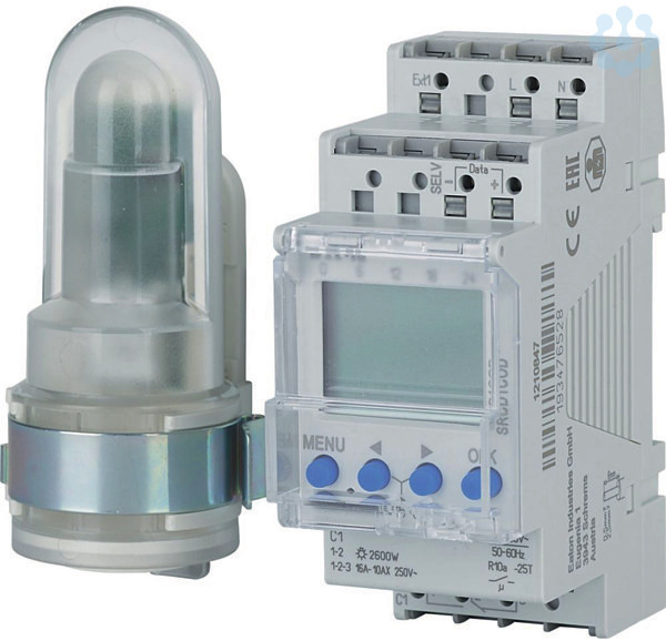 Digitale Dämmerungsschalter mit integrierter Wochenschaltuhr für Verteilerkasten, Breite 35,8mm, Externer Aufbau-Lichtsensor mit 1,5 m Anschlusskabel im Lieferumfang (IP55), Unterschiedliche Lux-Werte für jeden Tag der Woche programmierbar, unabhängig von der Helligkeit programmierbar, Schalthelligkeit und -verzögerung für das Ein- und Ausschalten getrennt einstellbar, Schalthelligkeit digital einstellbar 1 - 99000 Lux, Einstellbare Ein- und Ausschaltverzögerung zur Vermeidung von Fehlschaltungen durch Blitze und Autoscheinwerfer usw. Voreinstellung 1 Minute, Schalthelligkeit und -verzögerung für das Ein- und Ausschalten getrennt einstellbar, Anzeige des Kanal- und Schaltzustandes, sowie aktuellem Lux-Wert im Display, DuoFix-Federsteckklemmen für jeweils 2 Leiter je Anschlussklemme, Nulldurchgangsschaltung zur Schonung von Relais-Kontakt und Leuchtmittel für eine höhere Lebensdauer, breiter Luxbereich (1-99000 lux), hohe Schaltleistung, Wechsler Kontakt, 16(10) A/250V~, LED 350W (>2W), Stand-by Leistung ~0,3W
