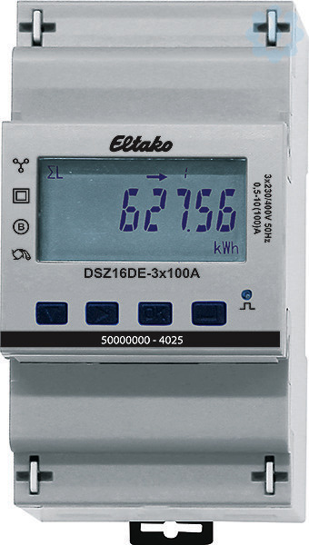 Direktmessender Drehstromzähler 3x100A mit Modbus- und S0-Schnittstelle. Stand-by-Verlust nur 0,8 W je Pfad.