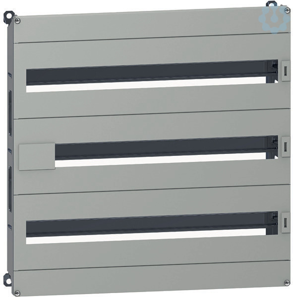Modulares Gehäuse Typ DLM für SPACIAL WM-Gehäuse. H600 x B600 mm, 84 (18mm) Module. Vielseitige, modulare Verteileranwendung. Stufenschlitten, Vorderseite der Gehäusemontage. Höhenverstellung von 40 bis 85 mm für DIN-Schiene. Stahl hergestellt. Grau RAL 7035. 2 Abdeckungen, 1 Neutral-/Erdstreifen 2 x 16 mm² 5 x 6 mm², 3 Frontplatten (35 mm DIN-Schiene).
