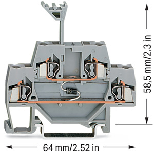 Bauelementklemme. Doppelstock. mit Diode 1N4007. Anode unten. für Tragschiene 35 x 15 und 35 x 7,5. 2,5 mm². CAGE CLAMP®. 2,50 mm². grau