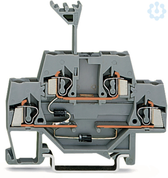 Bauelementklemme. Doppelstock. mit 2 Dioden 1N4007. Anode oben, Anode rechts. für Tragschiene 35 x 15 und 35 x 7,5. 2,5 mm². CAGE CLAMP®. 2,50 mm². grau