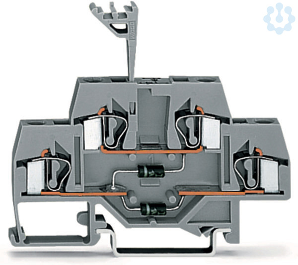 Bauelementklemme. Doppelstock. mit 2 Dioden 1N4007. Anode oben, Anode rechts. für Tragschiene 35 x 15 und 35 x 7,5. 4 mm². CAGE CLAMP®. 4,00 mm². grau