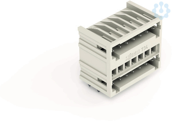 THT-Doppelstock-Stiftleiste. Lötstift 1,0 x 1,0 mm. abgewinkelt. 100% fehlsteckgeschützt. Rastermaß 3,5 mm. 14-polig. lichtgrau