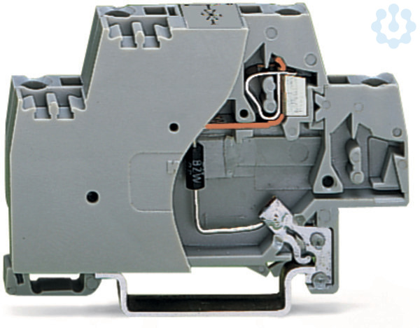 Bauelementklemme. Doppelstock. mit Abschlussplatte und direkter Ableitung auf Tragschiene. mit Transildiode 1.5KE-C. AC 115 V. für Tragschiene 35 x 15 und 35 x 7,5. 2,5 mm². CAGE CLAMP®. 2,50 mm². grau