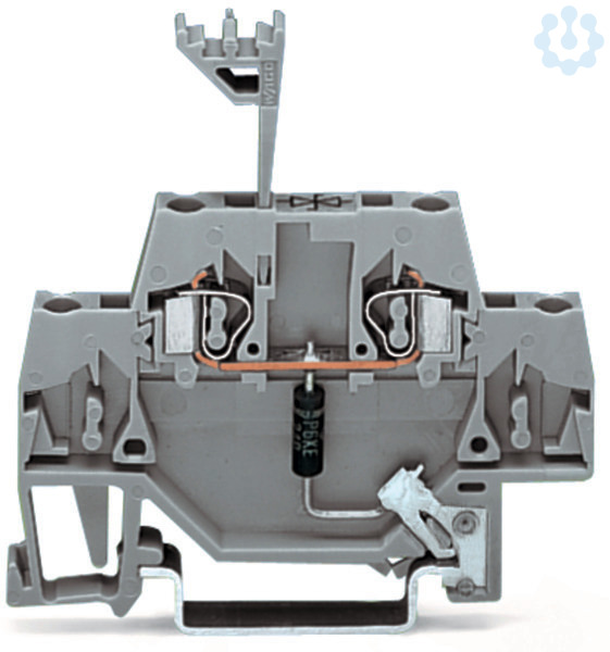 Bauelementklemme. Doppelstock. mit Transildiode P6KE91C. DC 60 V. für Tragschiene 35 x 15 und 35 x 7,5. 2,5 mm². CAGE CLAMP®. 2,50 mm². grau