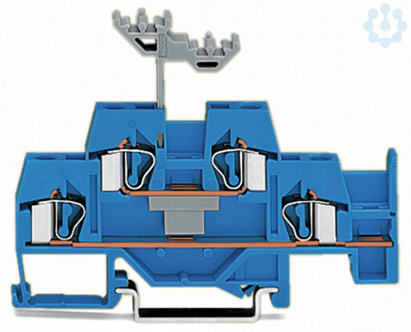 Doppelstockklemme. Durchgangs-/Durchgangsklemme. mit zusätzlicher Querbrückung im Erdgeschoss. für Anwendungen Ex i geeignet. für Tragschiene 35 x 15 und 35 x 7,5. 4 mm². 4,00 mm². blau
