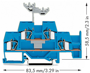 Doppelstockklemme. Durchgangs-/Durchgangsklemme. mit zusätzlicher Querbrückung im Erdgeschoss. für Anwendungen Ex i geeignet. für Tragschiene 35 x 15 und 35 x 7,5. 4 mm². 4,00 mm². blau
