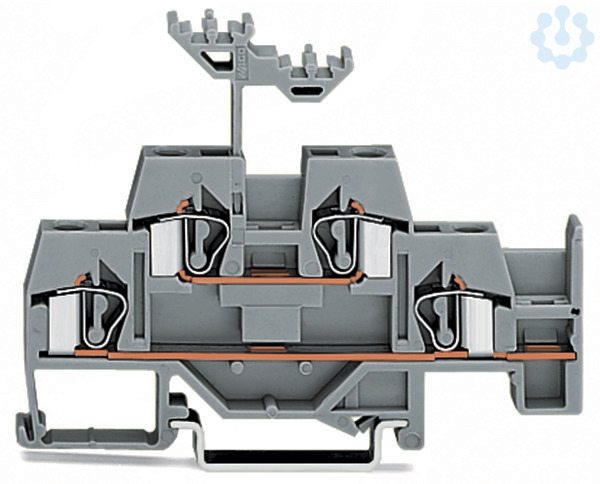 Doppelstockklemme. Durchgangs-/Durchgangsklemme. mit zusätzlicher Querbrückung im Erdgeschoss. für Tragschiene 35 x 15 und 35 x 7,5. 4 mm². 4,00 mm². grau