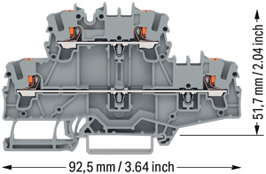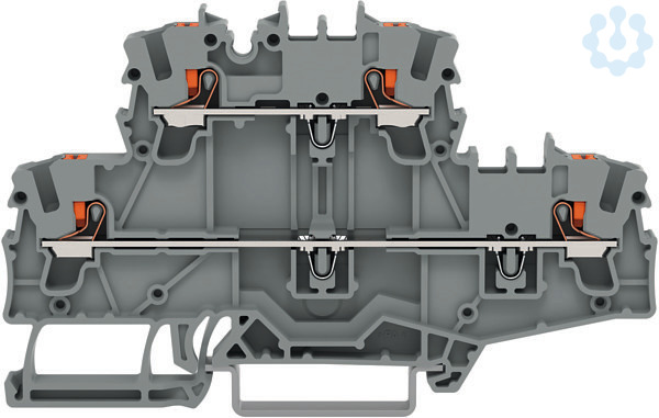 Doppelstockklemme. mit Drücker. Durchgangs-/Durchgangsklemme. L/L. ohne Beschriftungsträger. für Anwendungen Ex e II geeignet. für Tragschiene 35 x 15 und 35 x 7,5. 2,5 mm². Push-in CAGE CLAMP®. 2,50 mm². grau