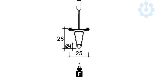 E-Klips, T-Drahtabhänger, zur Befestigung an Deckenprofilen, mit Öse, für Seil- und Kettenabhängung.