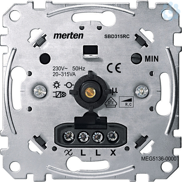 Für elektronische Trafos und Glühlampen (ohmsche Last). (Phasenabschnitt).Mit Druck-Wechselschalter. Brummfrei, kurzschlussfest, mit Überlastschutz, lampenschonender Softstart. Zu komplettieren mit Zentralplatte mit Drehknopf System M MEG5250-03xx/-04xx/-06xx Zentralplatte mit transparenter Abdeckung und Drehknopf M-Creativ MEG5250-3500. Zentralplatte mit Drehknopf System Design MEG5250-60xx, System Fläche MEG5250-40xx/-41xx/-42xx Hinweis Passend für Merten MET-Transformatoren. Ausführung 20-315 W.