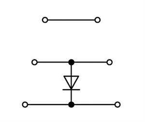 Bauelementklemme. Dreistock. mit Diode 1N4007. Anode oben. für Tragschiene 35 x 15 und 35 x 7,5. 2,5 mm². Push-in CAGE CLAMP®. 2,50 mm². grau