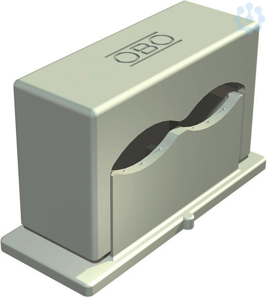 Druck-ISO-Schelle zum Befestigen von zwei Leitung, mit Klebefuß, Langloch und zum Aufschrauben auf Gewinde M6. Zum Kleben der Polystyrol-Schellen auf Mauerwerk und Beton Impu-Fix-Stegleitungs-Schnellkleber Typ 509 verwenden.