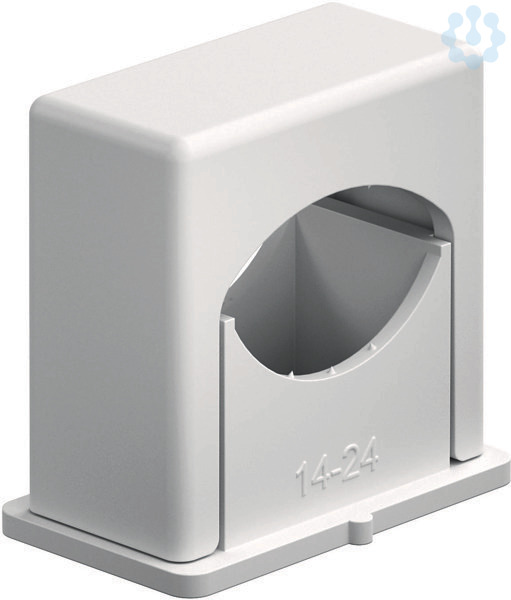 Druck-ISO-Schelle zum Befestigen von einer Leitung, mit Klebefuß, Langloch und zum Aufschrauben auf Gewinde M6. Zum Kleben der Polystyrol-Schellen auf Mauerwerk und Beton Impu-Fix-Stegleitungs-Schnellkleber Typ 509 verwenden.