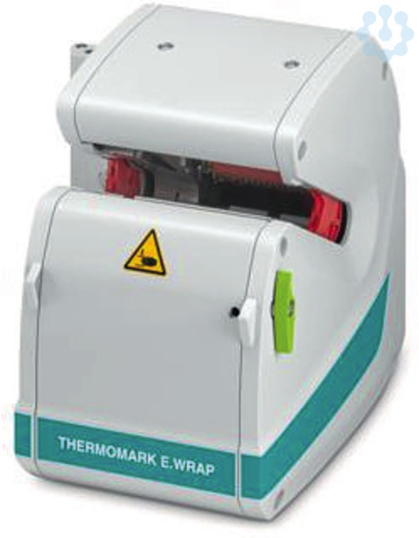 Applikator zum effizienten Bedrucken und Applizieren der Kabelwickeletiketten E-WML... auf Leitern und Kabeln in nur einem automatisierten Prozessschritt