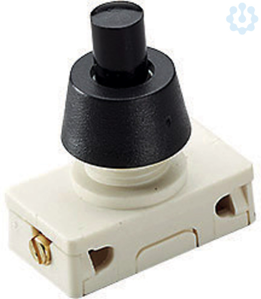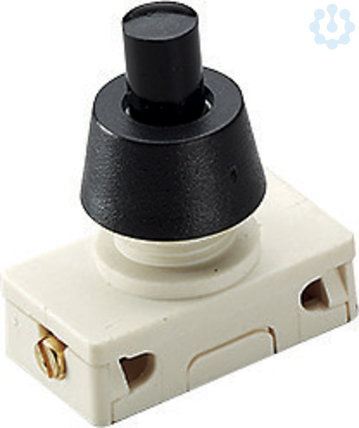 Druckknopfschalter Serie 3030 2(1) A 250V C, Ausschalter, 1polig, schwarz Zentralbefestigung M10 x1mm, Schraubkontakte, Rändelmutter aufgeschraubt