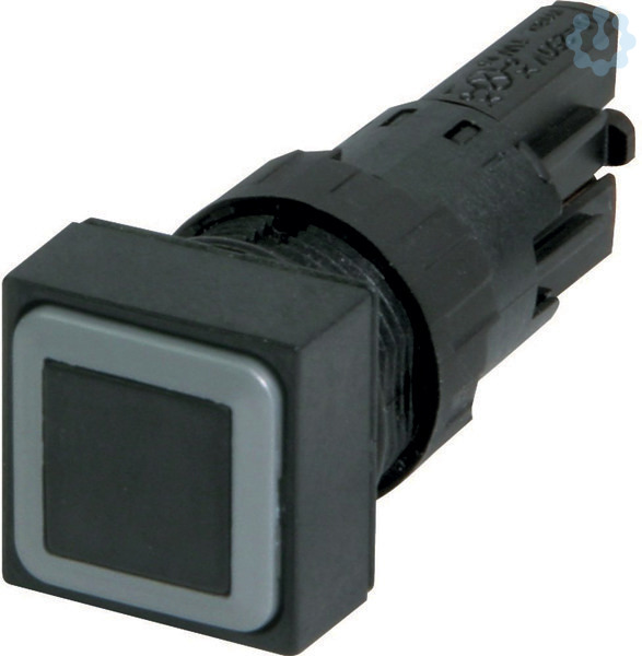 Drucktaste, Sortiment: RMQ16, Einzelgerät, Bauform: flach, tastend, Tastenplatte: schwarz, Tastenplatte unbeschriftet, Schutzart: IP65, ohne Frontring, Anbindung an SmartWire-DT: nein, Frontabmessung: 18 x 18