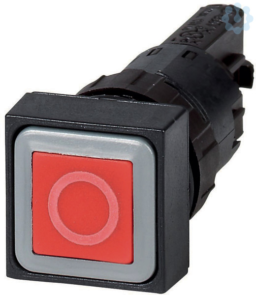 Drucktaste, Sortiment: RMQ16, Einzelgerät, Bauform: flach, tastend, Tastenplatte: rot, Tastenplatte beschriftet, Schutzart: IP65, ohne Frontring, Anbindung an SmartWire-DT: nein, Frontabmessung: 18 x 18
