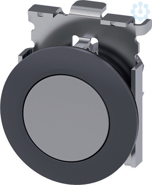 Drucktaster, 30 mm, rund, Metall, matt, grau, Frontring für flachen Einbau, tastend Drucktaster SIRIUS ACT zur Schaltung und Steuerung elektrischer Verbraucher.Unter dem Markennamen SIRIUS ACT bietet Siemens ein einzigartiges Portfolio an Befehls- und Meldegeräten mit weltweiten Produkt-Zulassungen in vier modernen Designreihen aus robustem Echtmetall und hochwertigem Kunststoff.Das innovative Aufschnappkonzept vereinfacht die Montage so weit, dass dafür nur eine Hand und kein Spezialwerkzeug erforderlich ist. Als Montagebohrungen genügen nutfreie Löcher, da bereits ein 100%iger Verdrehschutz integriert ist.Dank der durchgängig hohen Schutzart sind die robusten Geräte industrietauglich und für den Außeneinsatz geeignet. Sogar die Reinigung mit Hochdruckstrahl ist möglich. Weder Staub, Öle noch aggressive Laugen können den zuverlässigen Betrieb stören.Neben der Standardverdrahtung können die Geräte auch über PROFINET, AS-Interface oder IO-Link an die Steuerung angebunden werden. Damit reduzieren Sie Ihren Verd