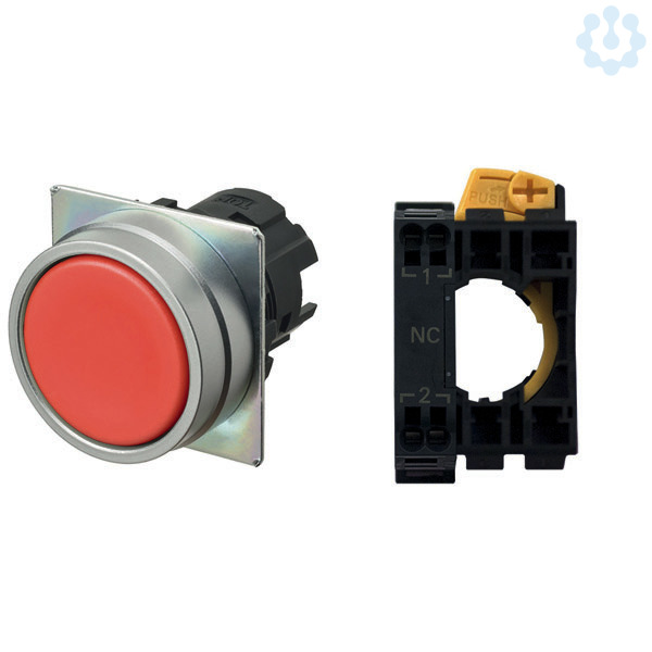 Drucktaster A22NN Ø22, bezel brushed metal, FLAT, tastend, CAP COLOR Opaque Rot, , 1NC, unbeleuchtet, push-in