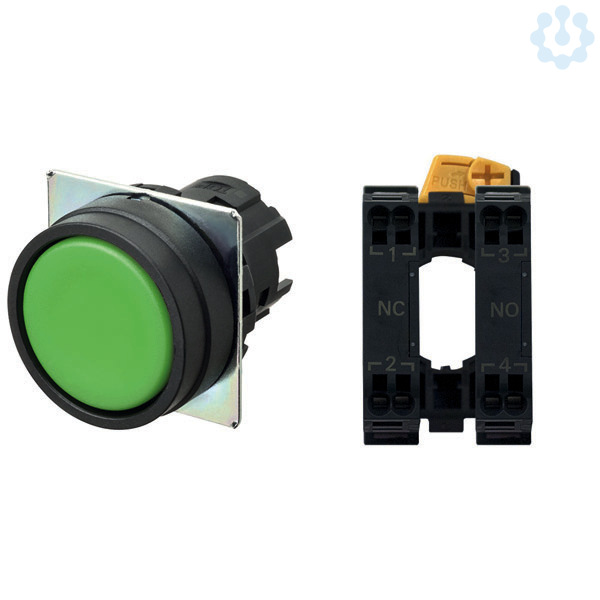 Drucktaster A22NN Ø22, bezel plastic, FLAT, Alternate, CAP COLOR Opaque grün, , 1NO1NC, unbeleuchtet, push-in terminal