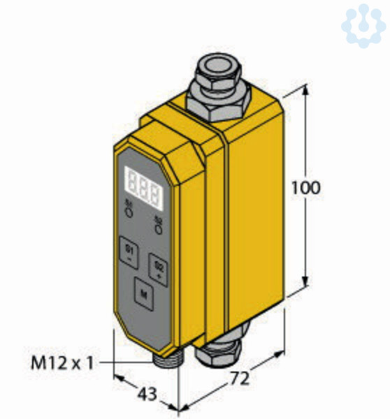 Durchflussmessung, Inline-Sensor mit integrierter Auswerteelektronik, Kompakter Inline Durchflusssensor, Kalorimetrisches Wirkprinzip, Überwachung der Durchflussmenge, Überwachung der Medientemperatur, Für Wasser- und Glykolgemische, Parametrierung über Drucktaster, Geschützt durch Softwarecode, Analogausgang Strömung 0?10 VDC, Analogausgang Temperatur 0...10 VDC, Elektrischer Anschluss M12 x 1