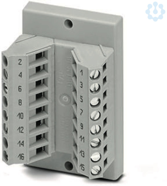 Das VARIOFACE-Durchführungsmodul realisiert eine 1:1-Verbindung zwischen Schraubanschlussklemmen und einer IDC / FLK - Stiftleiste (2,54 mm, Polzahl 16).
